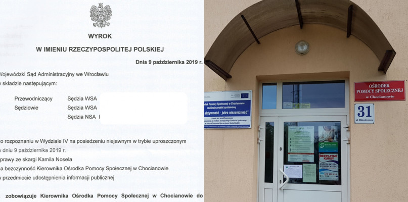 Sprawę skierowaliśmy do Wojewódzkiego Sądu Administracyjnego we Wrocławiu, który na posiedzeniu 9 października, orzekł, że nowa kierownik OPS w Chocianowie nie miała racji, blokując nam dostęp do informacji. Sąd w swoim wyroku stwierdził: